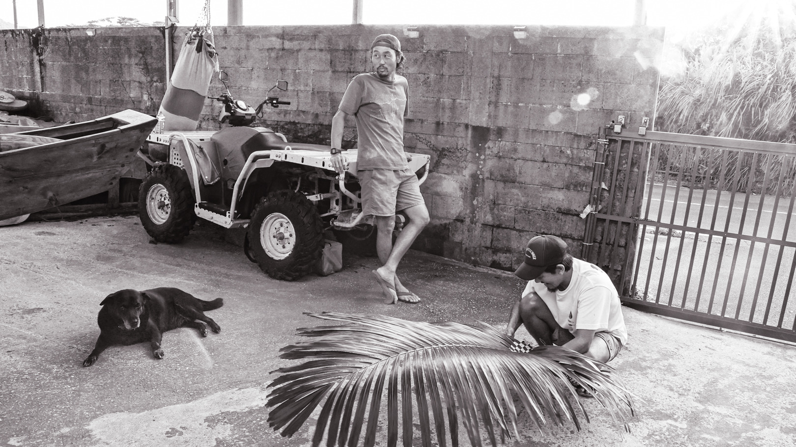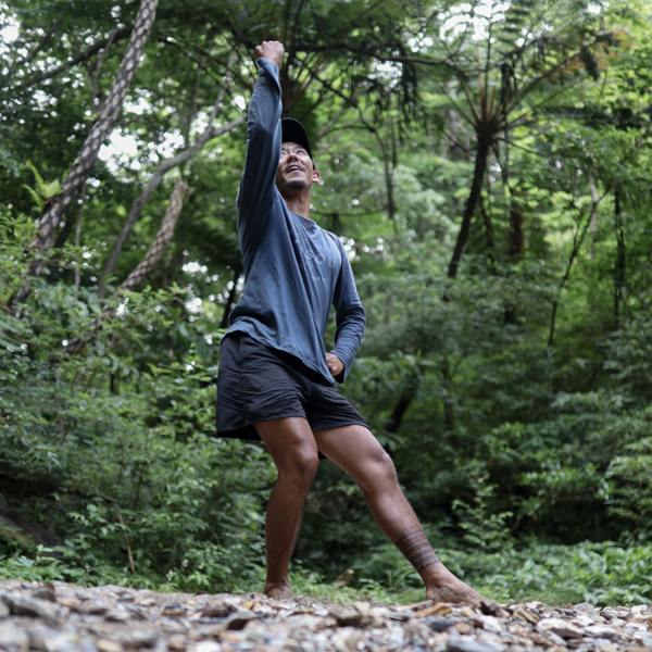 やんばるの波乗り専門ガイドBlueLinkを営みながら、JUNGLE SUPの原点をつくってきた存在。人の少ない場所、自分たちのペースで過ごせる“エスケープできる場所”を探し続けながら、このフィールドを育ててきました。スケートボードを自分で作り、サバニを直し、エークを削るなど、必要なものを自らの手で形にしていく。現在は、100年サバニを修繕し、Izumiさんや仲間たちとアダンの葉で帆を編みながら、昔ながらの船で外洋に出るプロジェクトも進めています。